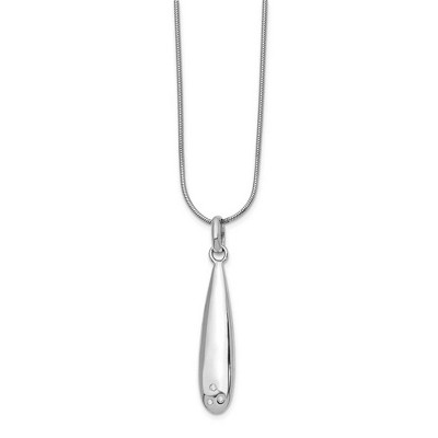 Black Bow Jewelry Elongated Diamond Accent Tear Adj. Necklace in Rhodium Plated Silver