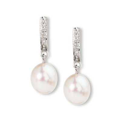 Ross-Simons 8-9mm Cultured Pearl Dangle Earrings With Diamond Accents in Sterling Silver