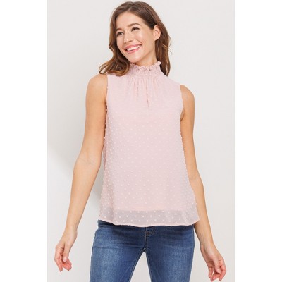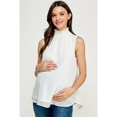 Hello Miz Maternity Swiss Dot Sleeveless Mock Neck Blouse