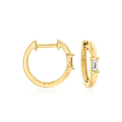 Pure Collection by Ross-Simons Baguette Diamond-Accented Huggie Hoop Earrings in 14kt Yellow Gold