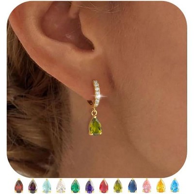 Trendy 14K Gold Plated Hypoallergenic Drop Hoop Earrings Dainty Diamond Birthstone Huggie Earrings