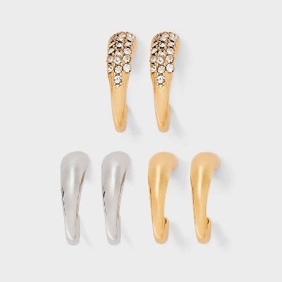 Hoop and Crystal Hoop Earring Set 3pc - A New Day™ Metallic Silver/Gold: Hypoallergenic Zinc, Post Closure