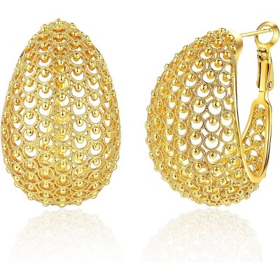 Guili Classic Hoop Earrings in 14k Yellow Gold Plating with Clear Cubic Zirconia, A Timeless & Elegant Jewelry Choice for Everyday Glamour