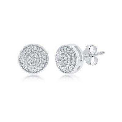 Diamonds D'Argento Sterling Silver, Round Halo Diamond Stud Earrings - (46 Stones) - Silver