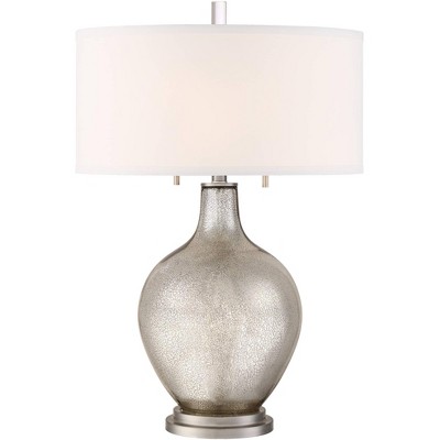 360 Lighting Marnie Modern Coastal Table Lamp 28" Tall Blue Art Glass White Fabric Drum Shade for Bedroom Living Room Bedside Nightstand Office House