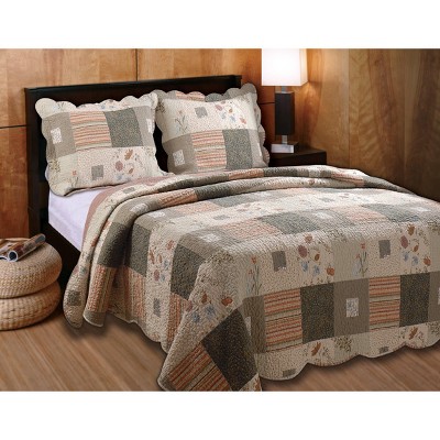 - stripes floral and diamonds quilted coverlet