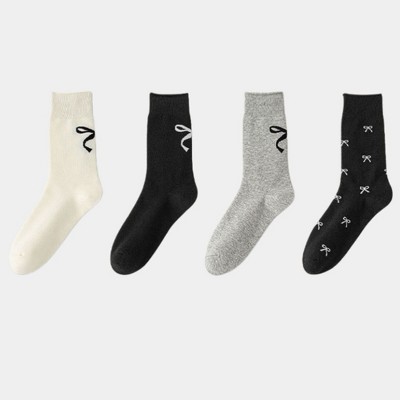 Anna-Kaci Women's 3 Pairs Knit Socks with Waffle Texture Bow Embroidery Ruffled Edge Ribbed Cuffs