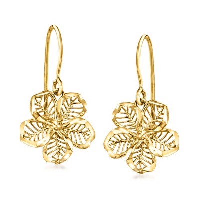 Ross-Simons 14kt Yellow Gold Openwork Flower Drop Earrings