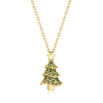 Ross-Simons 0.15 ct. t.w. Green Diamond Christmas Tree Pendant Necklace in 18kt Gold Over Sterling Size 18