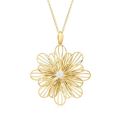 Ross-Simons Italian 18kt Gold Over Sterling Daisy Pendant Necklace With 5-6mm Cultured Pearl Size 18