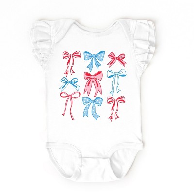 The Juniper Shop Patriotic Bows Stacked Coquette Flutter Sleeve Bodysuit