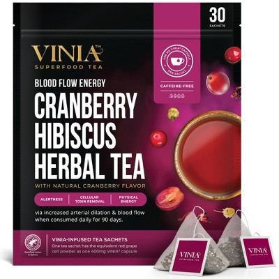 VINIA Cranberry Hibiscus Herbal Tea Bags 30ct, Organic Herbal Tea with Red Grape Extract, Caffeine Free, Keto, Kosher, Non-GMO