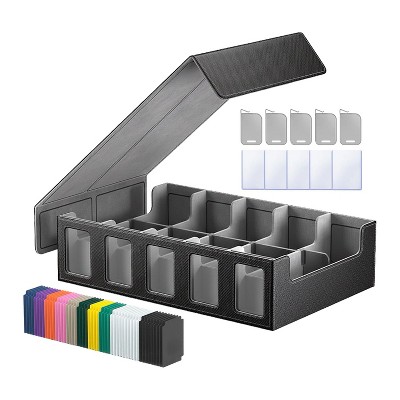 Itopfox 5 Row Trading Card Storage Box Holds 3900 Cards Magnetic Lid Display Windows Dividers Dice Box for MTG Sports Cards Case