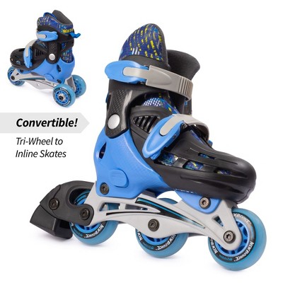 New Bounce Beginner Roller Skates – Convertible Tri-Wheel or Inline Skates - Size US 8-11