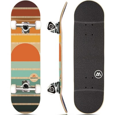 Magneto Skateboard | Maple Wood | ABEC 5 Bearings | Double Kick Concave Deck | For Beginners, Teens (Retro Sun)