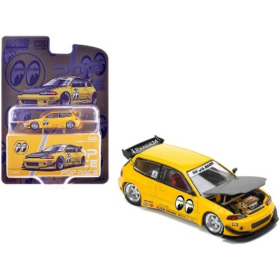 Pandem Civic EG6 RHD (Right Hand Drive) "Mooneyes" Yellow with Carbon Hood "Enigma Exclusive Edition" 1/64 Diecast Model Car by Pop Race