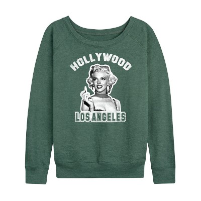 Women's - Marilyn Monroe - Hollywood Los Angeles California Lightweight French Terry Wide Neck Long Sleeve Graphic Shirt