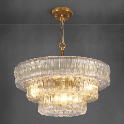 CityFurn 12-Light Modern Tiered Rectangle Chandelier With Glass Shades