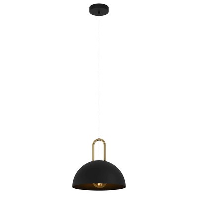 Calmanera Pendant Structured Black Finish - EGLO: Dome Shade, Brushed Brass Accents, ETL Listed