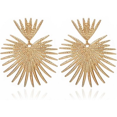 Geometric Rhombus Ear Jacket Earrings, Hollow Front & Back Design in Gold Tone