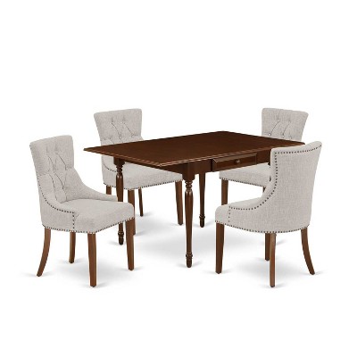 HomeStock 5-Pc Mahogany Finish Solid Wood Top - Rectangular Dining Room Set with Dropleaf - Seats 4