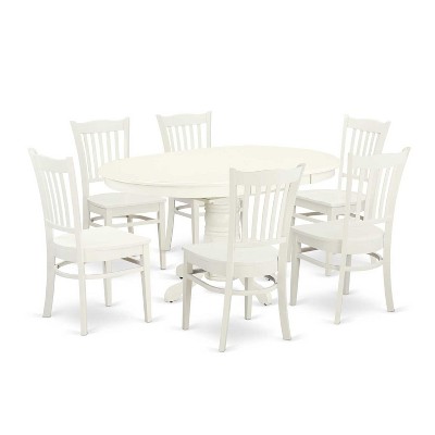 HomeStock 7-Pc Linen White Finish Solid Wood Top Dining Table with 6 Chairs
