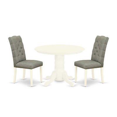 HomeStock 3-Piece Linen White Finish Solid Wood Top Dining Table Set