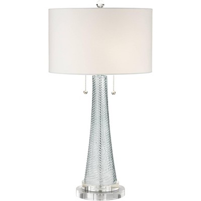Possini Euro Design Modern Table Lamp 28 1/2" Tall with USB Dimmer Aqua Blue Swirl Fluted Glass White Drum Shade for Bedroom Living Room House Bedside