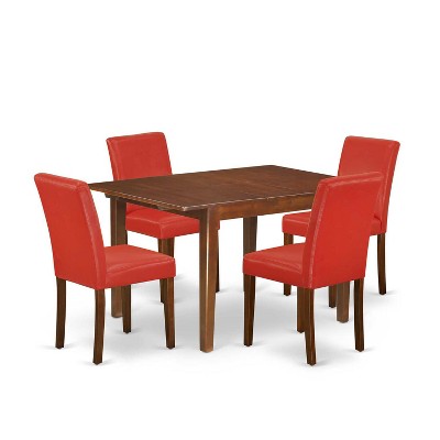 HomeStock 5-Pc Mahogany Finish Solid Wood Top - Dining Room Set with Dropleaf - Seats 4