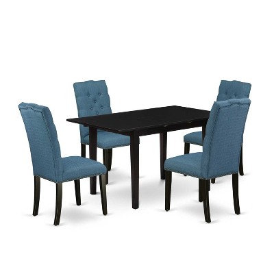 HomeStock 5-Pc Rectangular Black Finish Solid Wood Top-Dining Room Set with Butterfly Leaf-Seats 4
