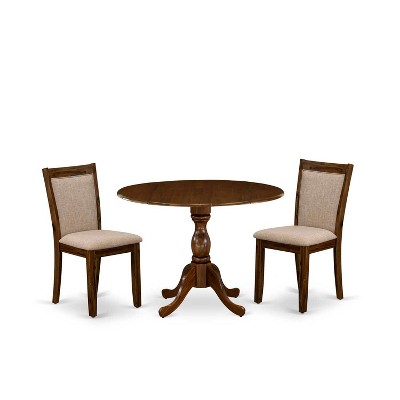 3-Piece Mahogany Finish Solid Wood Top-Round Upholstered Dining Room Set-Seats 4