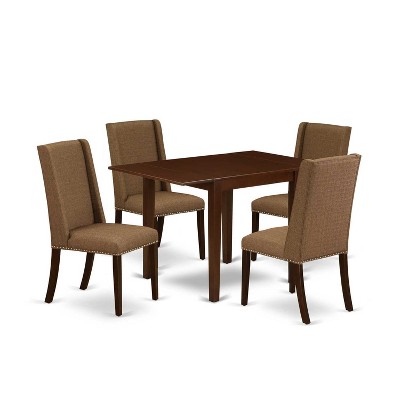 5-Piece Mahogany Finish Solid Wood Top - Rectangular Upholstered Dining Room Set (Seats-4)