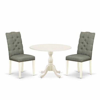 3-Piece Linen white Solid Wood Top - Round Dining Room Set - Seats 4