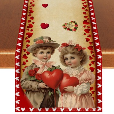 Red Vintage Valentine's Day Table Runner,Valentines Day Boys and Girls Decorations
