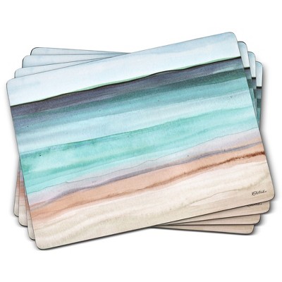 Pimpernel Coastal Shore Placemats - Set of 4 Rectangular Cork Backed Table Mats with Ocean-Inspired Artwork - Heat & Stain Resistant Dining Placemats