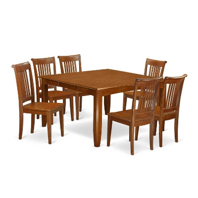 HomeStock 7-Piece Square Saddle Brown Finish Solid Wood Top Dining Table with 6-Chairs