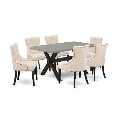 HomeStock 7-Piece Rectangle Linen White Finish Solid Wood Top Dining Table with 6-Chairs with Slat Back