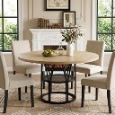 Best Choice Products 47In Round Solid Wood Dining Table, Modern Farmhouse Table For 4, Space Saving, Easy Assembly