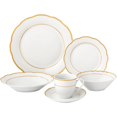 Dinewares White with Gold Rim Bone China Dinnerware Set - Service for 4 or 8, Includes Dinner Plates, Salad Plates, and Cereal or Soup Bowls