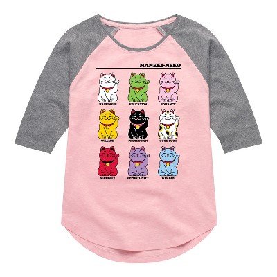 Girls' - Instant Message - Lucky Cat Shirt Tail Raglan Graphic T-shirt