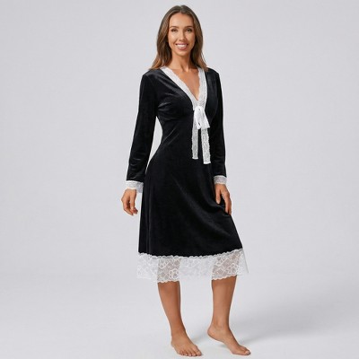 Women's Luxurious Velvet Robe with Lace Trim - Cupshe