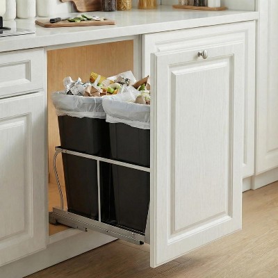 - gray trash can bathroom