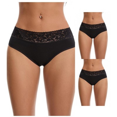 INSPIRE CHIC Women's Lace Ice Silk Hollow Out Mid Rise Comfort Boyshorts Briefs 3 Packs