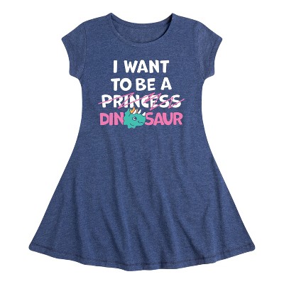 Girls' - Instant Message - I Want To Be A Dinosaur -Not Princess Fit & Flair Cap Sleeve Graphic Dress