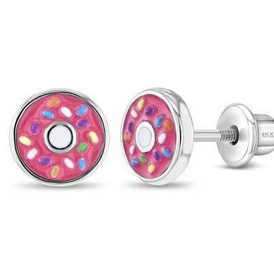 Girl's Frosted with Sprinkles Donut Screw Back Sterling Silver Earrings - In Season Jewelry