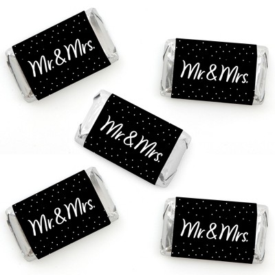 Big Dot of Happiness Mr. and Mrs. - Mini Candy Bar Wrapper Stickers - Black and White Wedding or Bridal Shower Small Favors - 40 Count