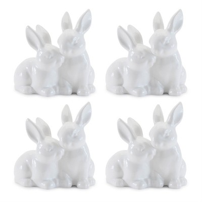 Ceramic Bunny Couple Figurines Set of 4 Mini Garden Accent – 4" H by Melrose