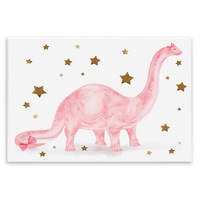 Stupell Industries Pink Dinosaur with Gold Stars Wall Plaque Art, 15" x 10"
