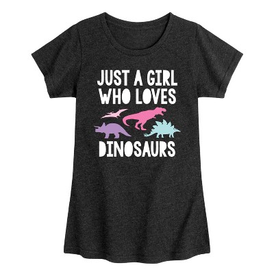 Girls' - Instant Message - Just A Girl Who Loves Dinosaurs Fitted Short Sleeve Graphic T-Shirt