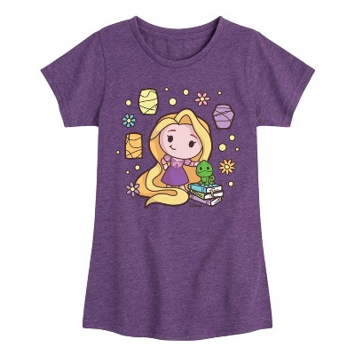 Girls' - Disney Princess - Kawaii Chibi Rapunzel and Pascal Fitted Short Sleeve Graphic T-Shirt